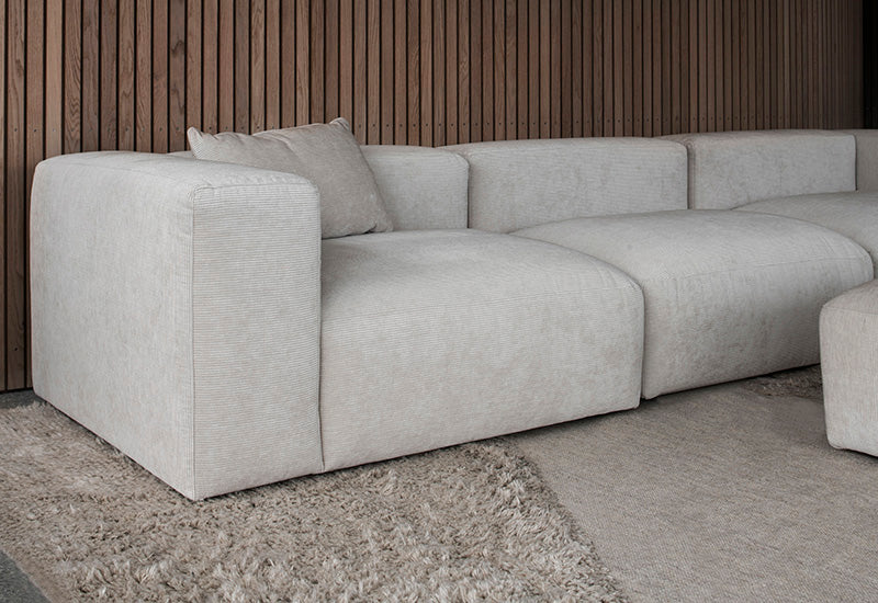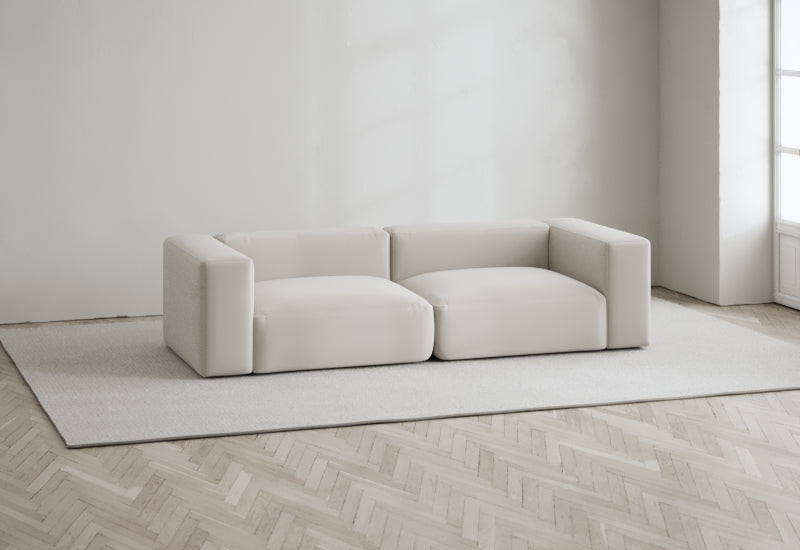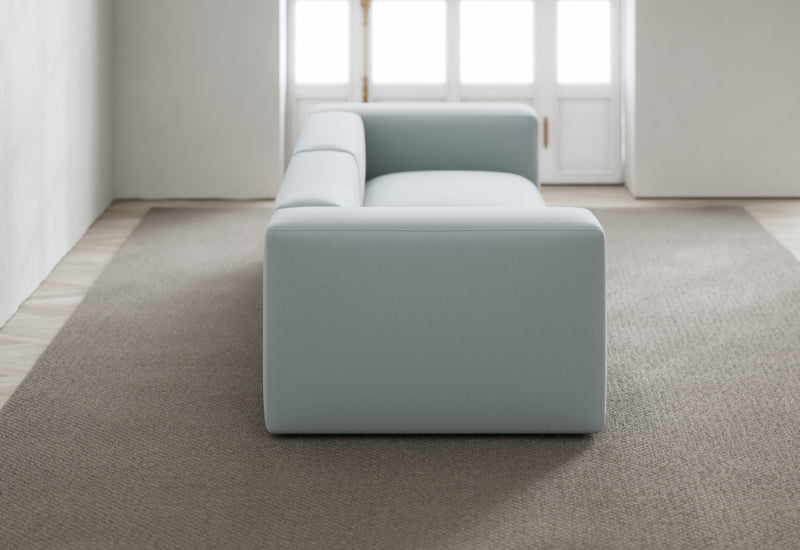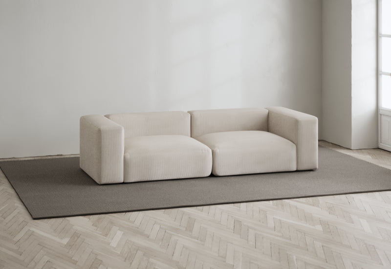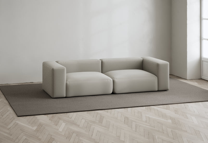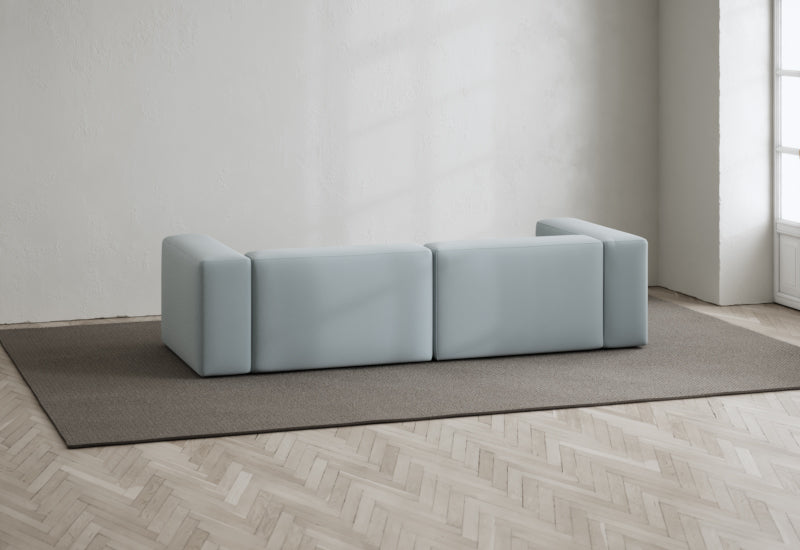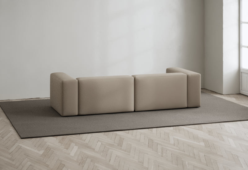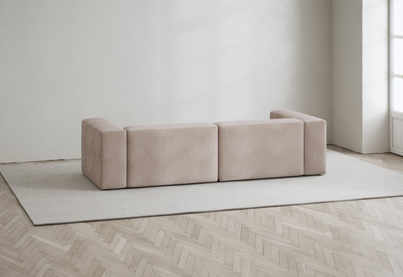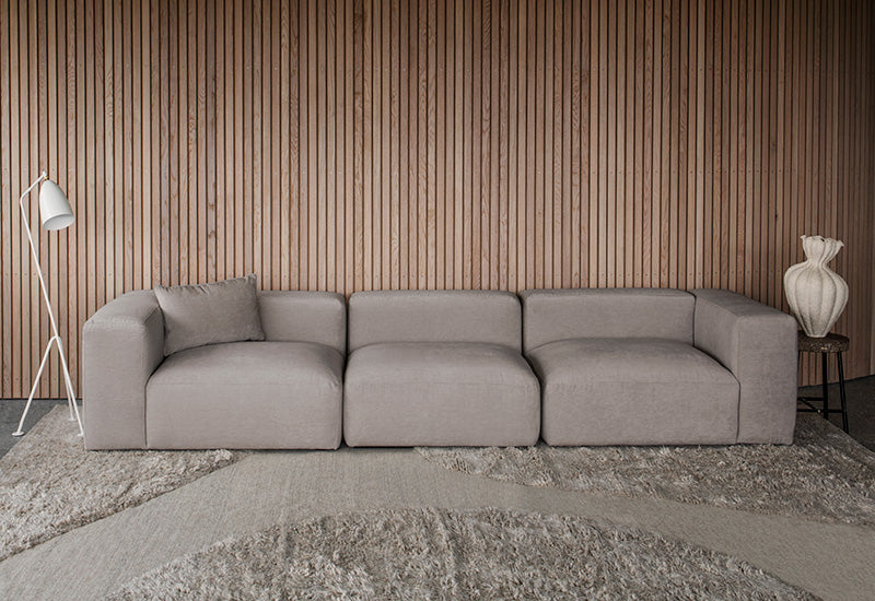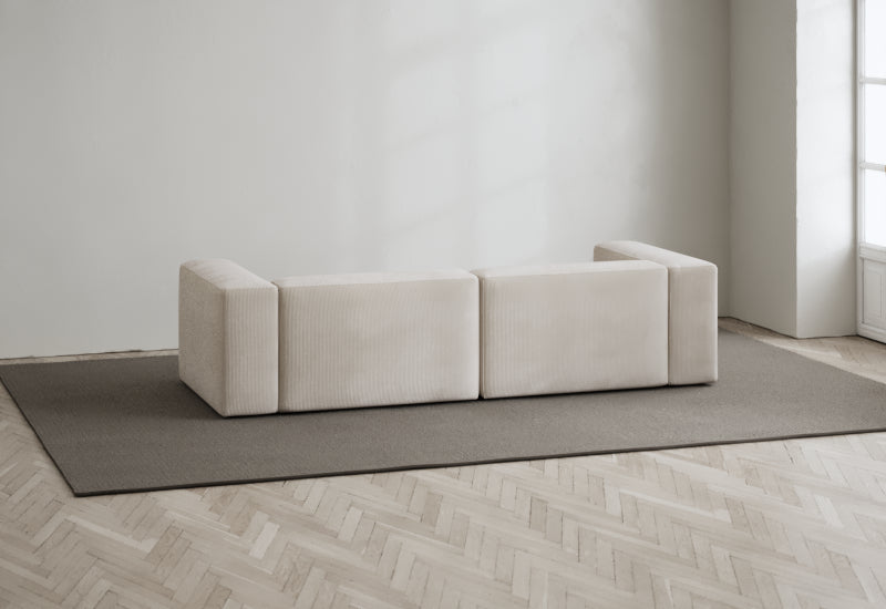 Soffserien Modular är en hyllning till det italienska 70-talet, kombinerat med glamouren från Milanos förflutna. Samtidigt återspeglar produktions- och tygvalen ett modernt sammanhang där hållbarhet står i fokus. Soffan är omsorgsfullt handgjord i Bulgarien, vilket garanterar ett exceptionellt hantverk. Fungerar även som en 3-sitsig soffa.
