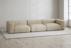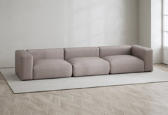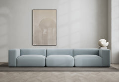 All furniture is delivered fully assembled, while individual modules are shipped separately for easy and secure assembly using hooks. The weight of the separate modules ranges from 15 to 75 kg, with sofas weighing between 50 and 95 kg.