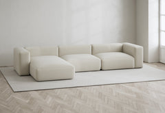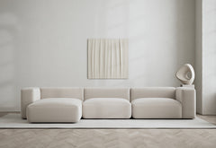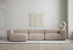 All furniture is delivered fully assembled, while individual modules are shipped separately for easy and secure assembly using hooks. The weight of the separate modules ranges from 15 to 75 kg, with sofas weighing between 50 and 95 kg.