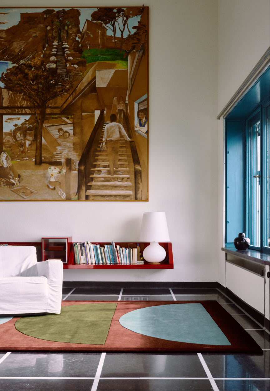 “We started sketching something more graphic and bold – rugs that truly claim their space. The idea draws from Gio Ponti’s approach to pattern and colour in architecture, where everything is about balance rather than decoration.”
