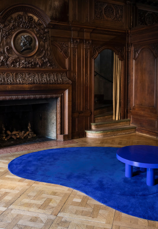 The collection’s unique kidney shape makes each rug easy to place in any space, creating an interesting dynamic atmosphere.