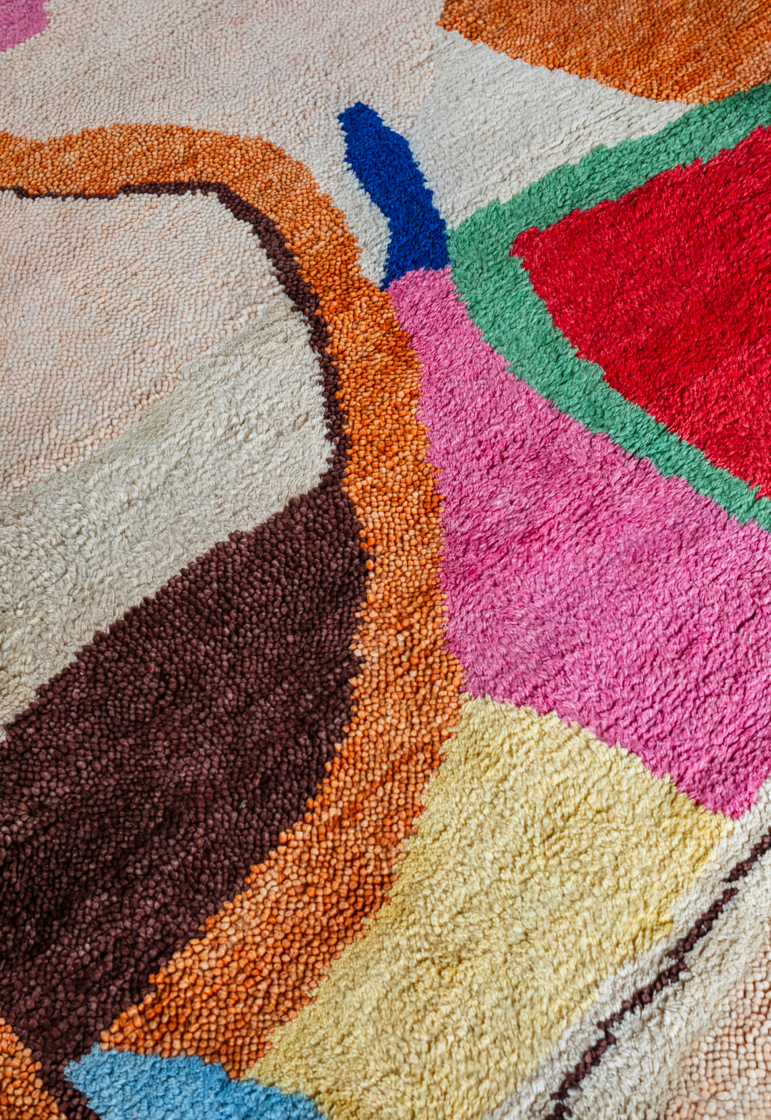 Artist Series Heather Chontos: This rug is part of a collaboration between LAYERED and multidisciplinary artist Heather Chontos, known for her abstract compositions where bold colors and dynamic shapes take center stage. Each piece is handcrafted from 100% New Zealand wool, valued for its softness and quality.