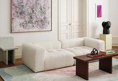 Den modulære sofaserien er en hyllest til det italienske 70-tallet, kombinert med glamouren fra Milans fortid. Samtidig gjenspeiler produksjonen og stoffvalget en moderne kontekst der bærekraft står i fokus. Sofaen er omhyggelig håndlaget i Bulgaria, noe som sikrer eksepsjonelt håndverk.