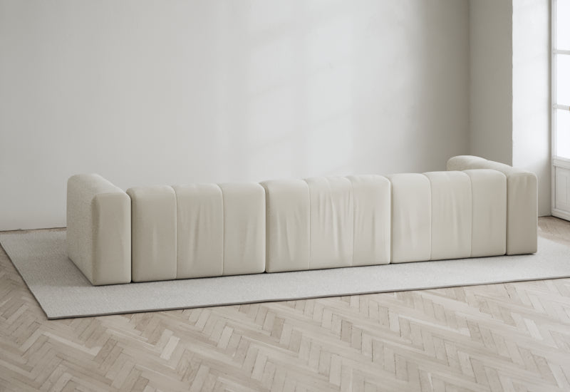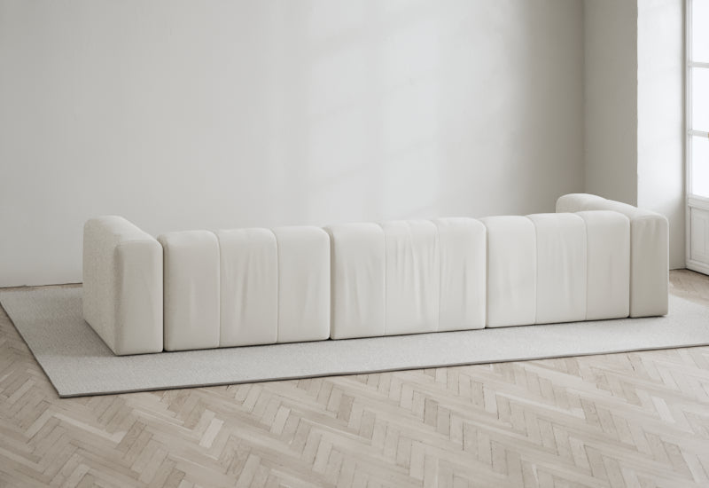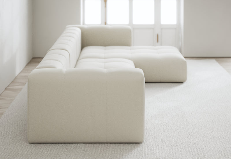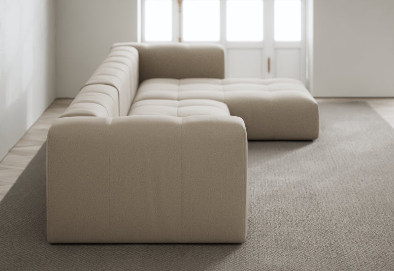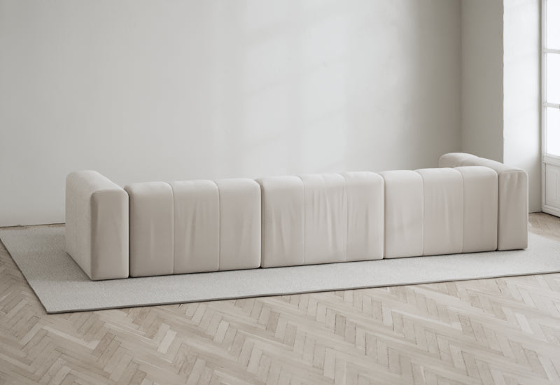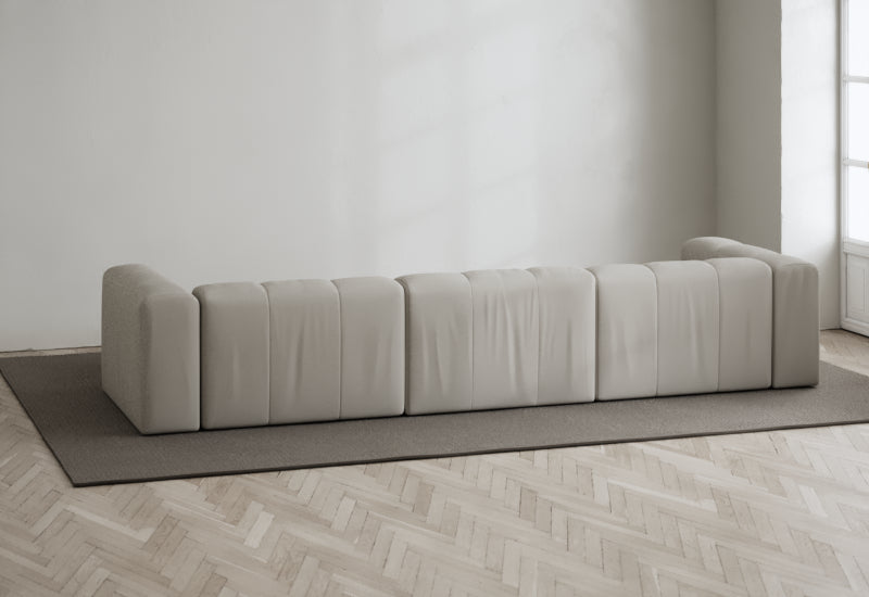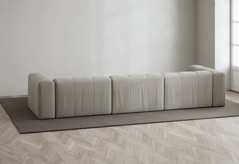 Den modulære sofaserien er en hyllest til det italienske 70-tallet, kombinert med glamouren fra Milans fortid. Samtidig gjenspeiler produksjonen og stoffvalget en moderne kontekst der bærekraft står i fokus. Sofaen er omhyggelig håndlaget i Bulgaria, noe som sikrer eksepsjonelt håndverk.