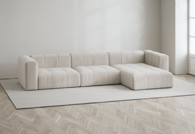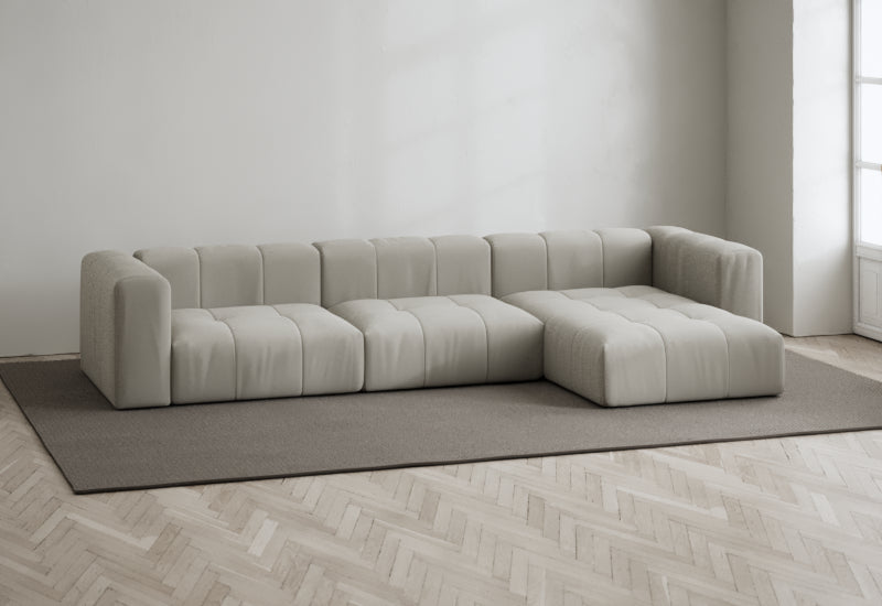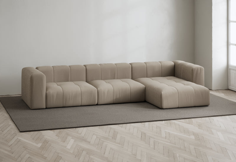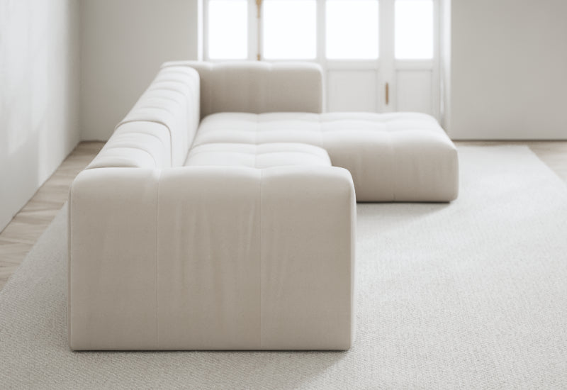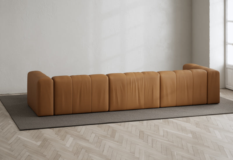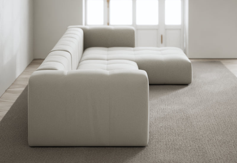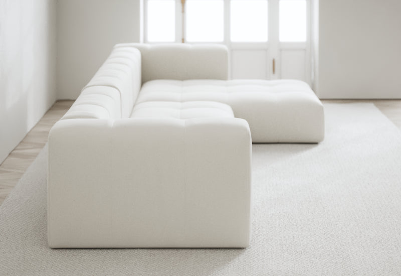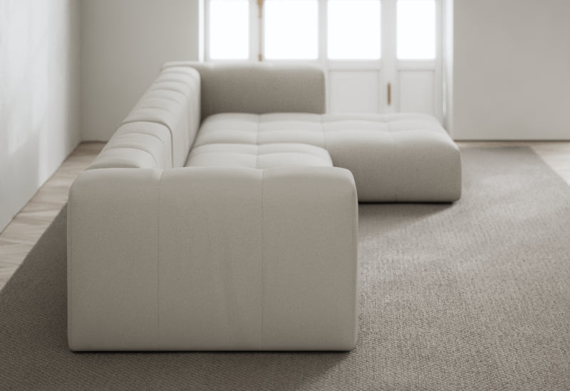 Den modulære sofaserien er en hyllest til det italienske 70-tallet, kombinert med glamouren fra Milans fortid. Samtidig gjenspeiler produksjonen og stoffvalget en moderne kontekst der bærekraft står i fokus. Sofaen er omhyggelig håndlaget i Bulgaria, noe som sikrer eksepsjonelt håndverk.