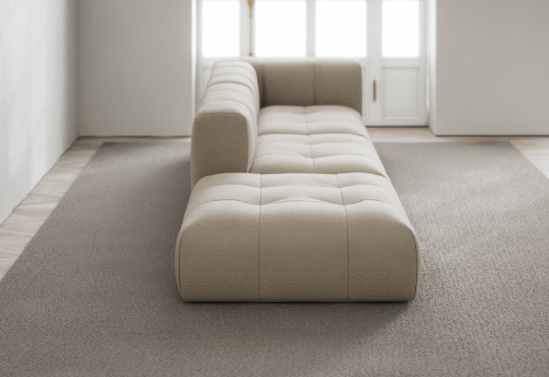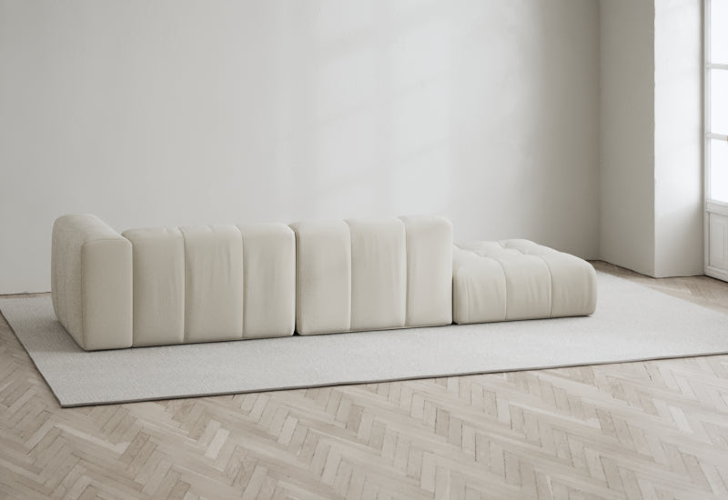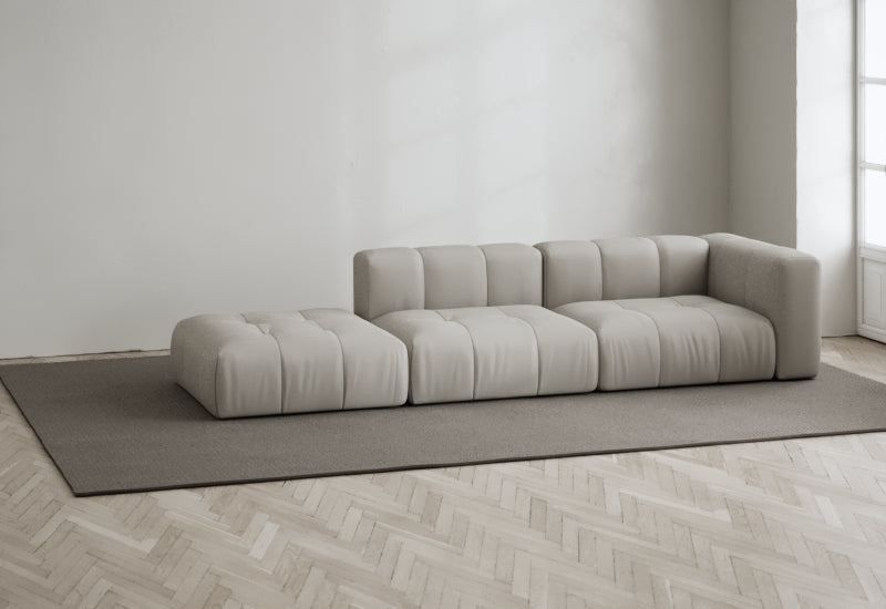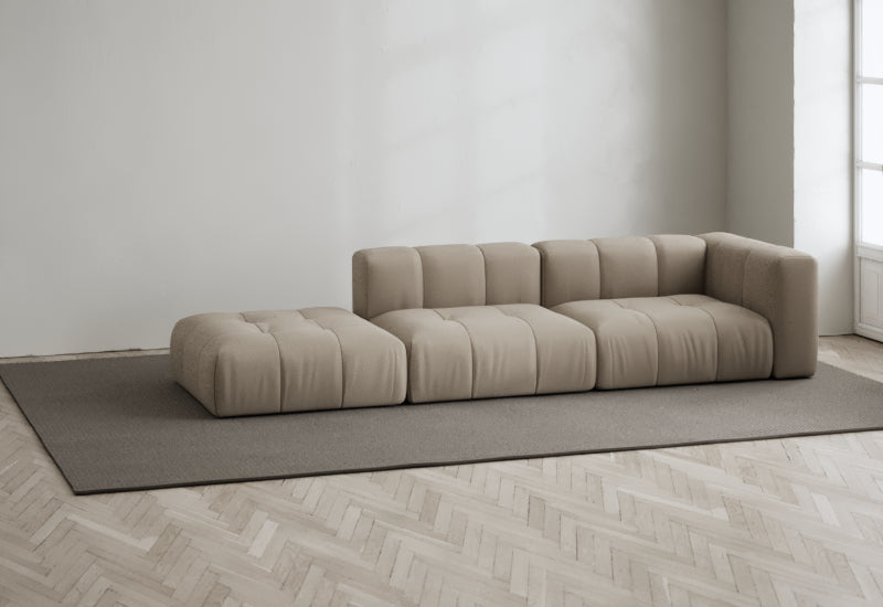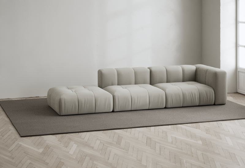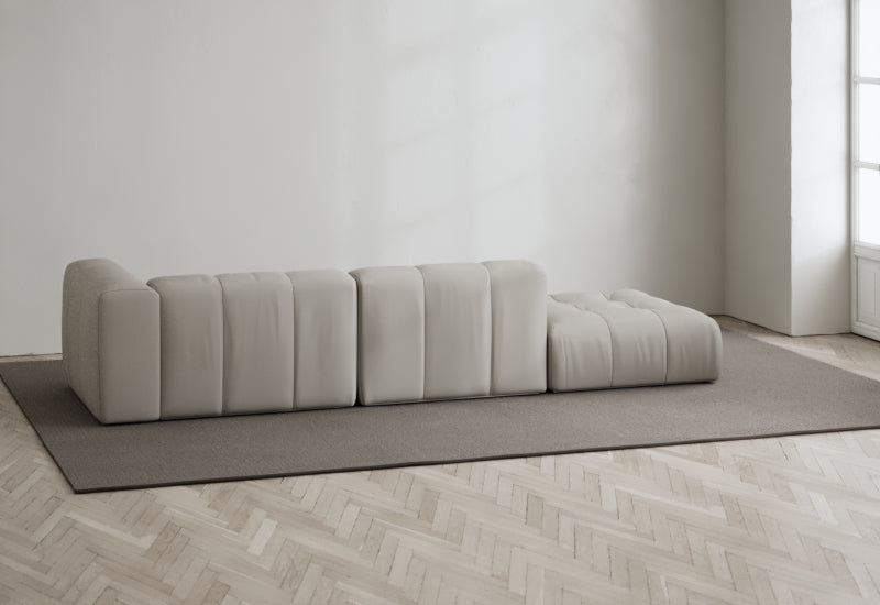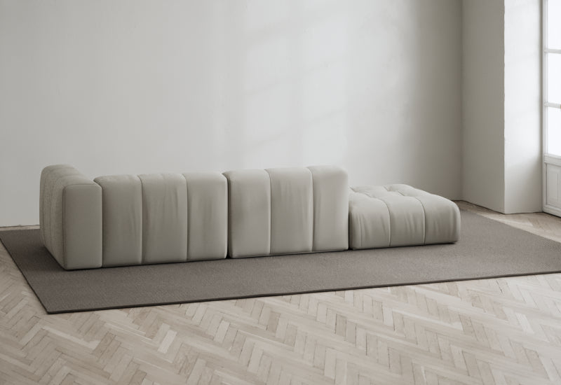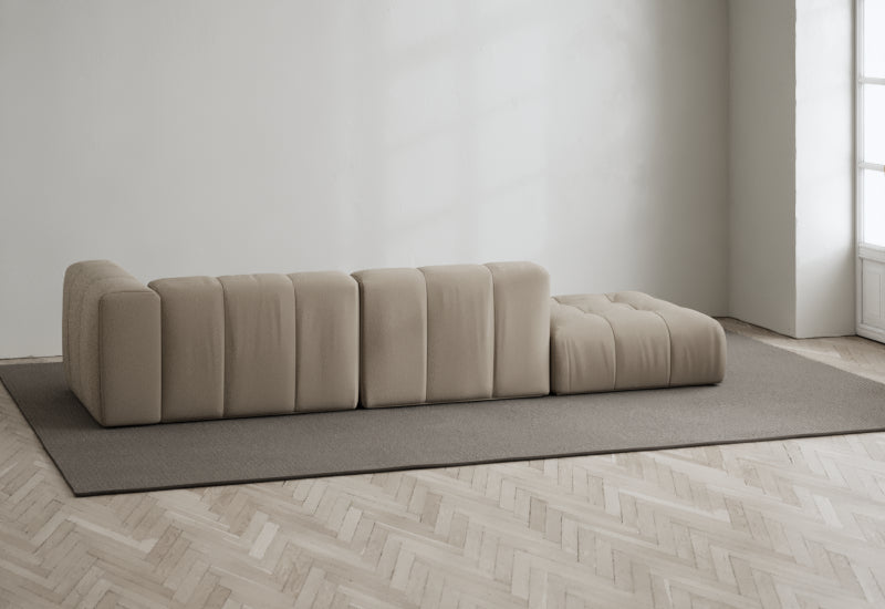 Den modulære sofaserien er en hyllest til det italienske 70-tallet, kombinert med glamouren fra Milans fortid. Samtidig gjenspeiler produksjonen og stoffvalget en moderne kontekst der bærekraft står i fokus. Sofaen er omhyggelig håndlaget i Bulgaria, noe som sikrer eksepsjonelt håndverk.