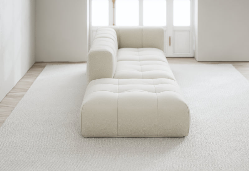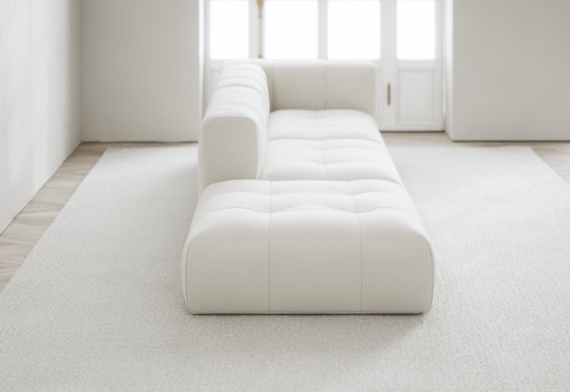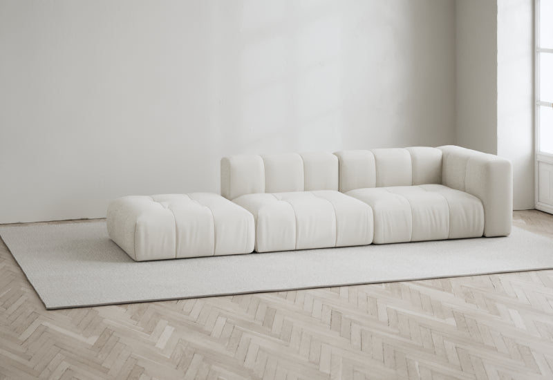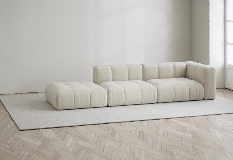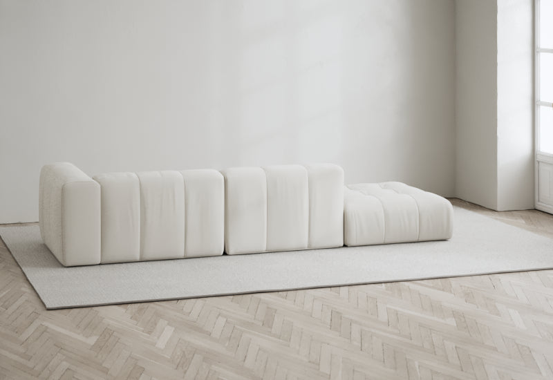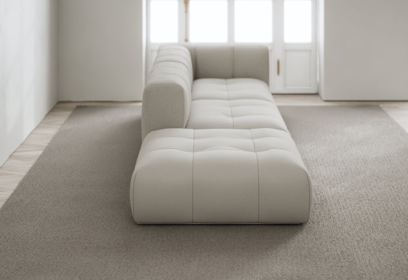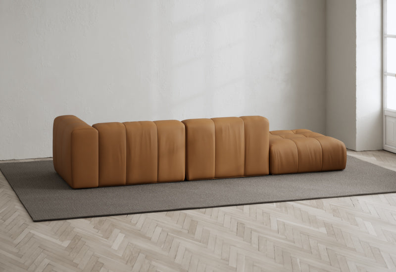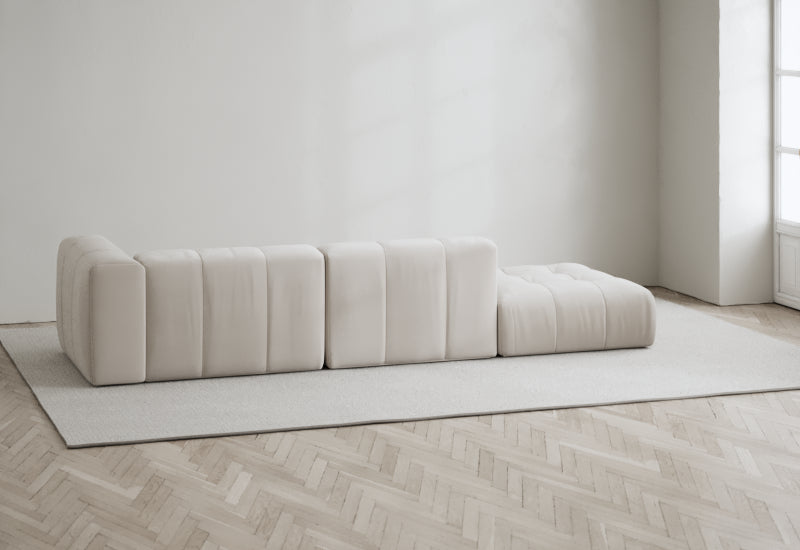 Den modulære sofaserien er en hyllest til det italienske 70-tallet, kombinert med glamouren fra Milans fortid. Samtidig gjenspeiler produksjonen og stoffvalget en moderne kontekst der bærekraft står i fokus. Sofaen er omhyggelig håndlaget i Bulgaria, noe som sikrer eksepsjonelt håndverk.