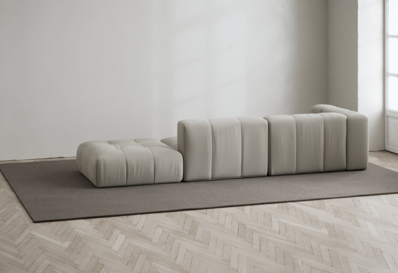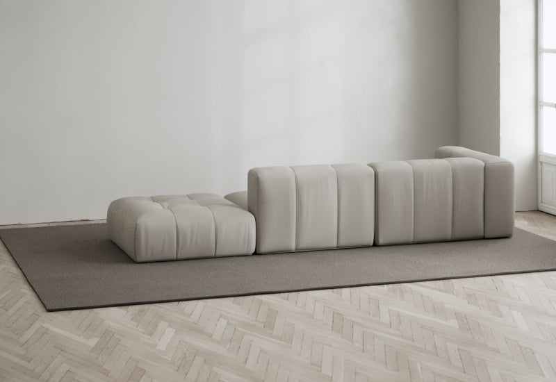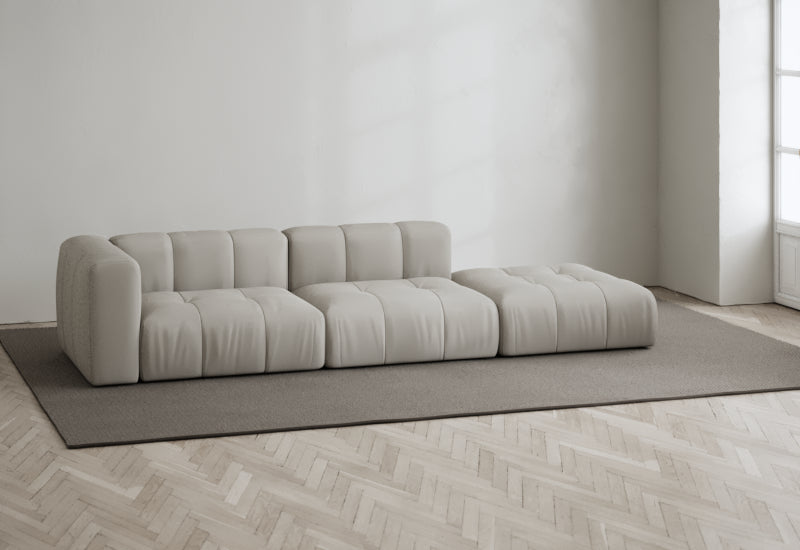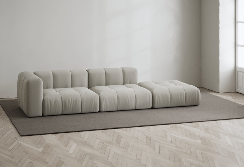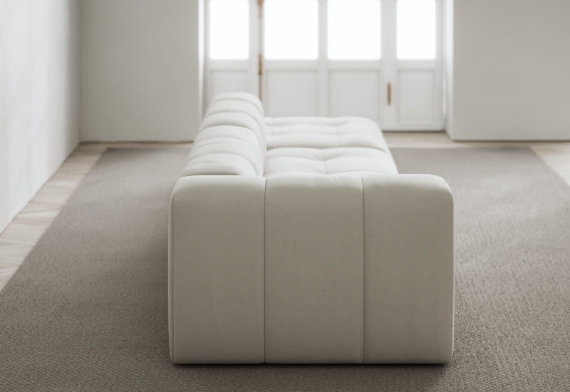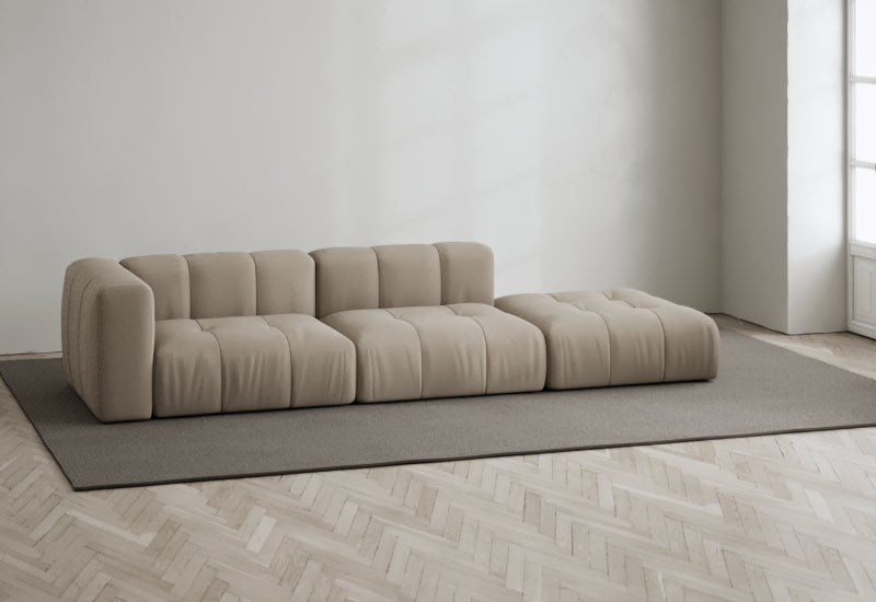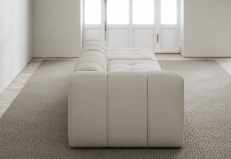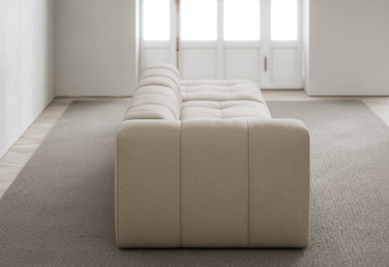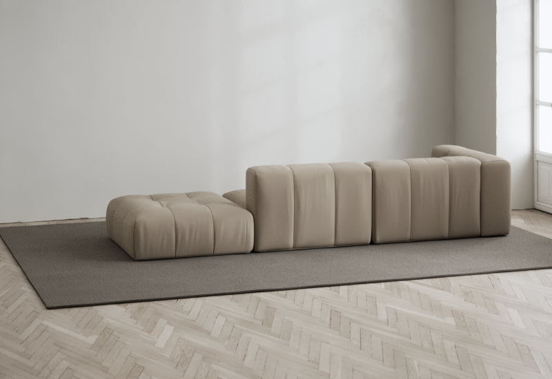 Den modulære sofaserien er en hyllest til det italienske 70-tallet, kombinert med glamouren fra Milans fortid. Samtidig gjenspeiler produksjonen og stoffvalget en moderne kontekst der bærekraft står i fokus. Sofaen er omhyggelig håndlaget i Bulgaria, noe som sikrer eksepsjonelt håndverk.