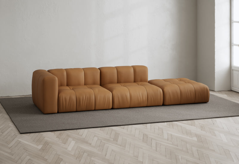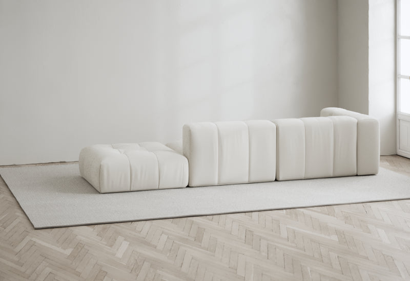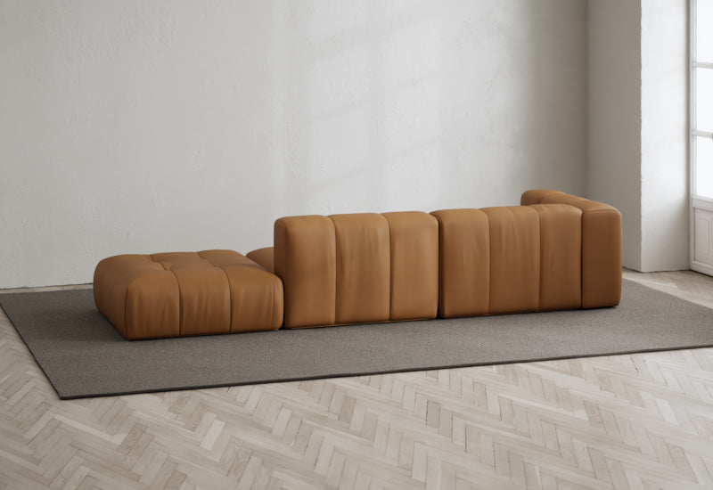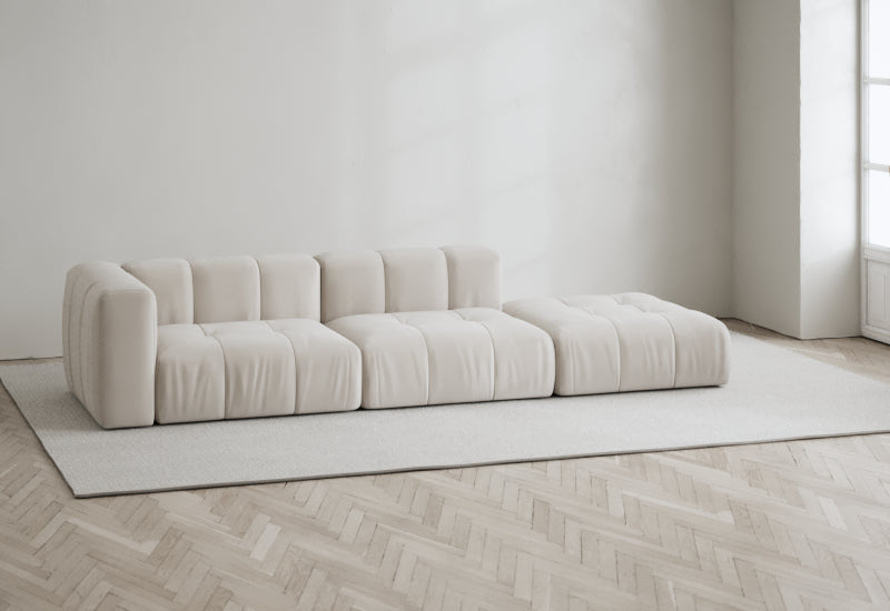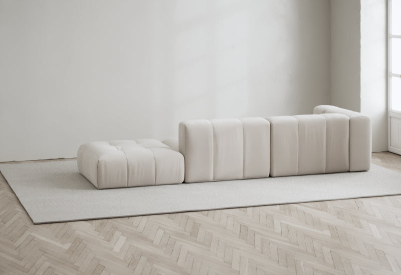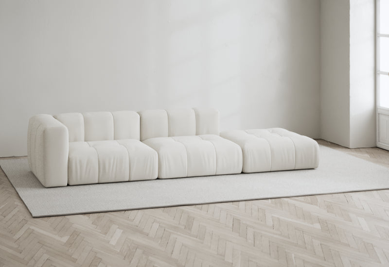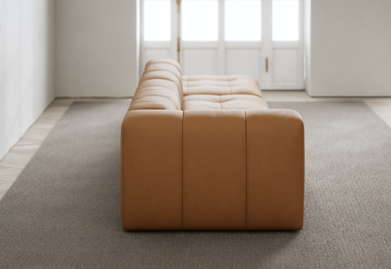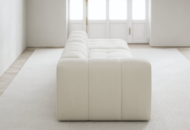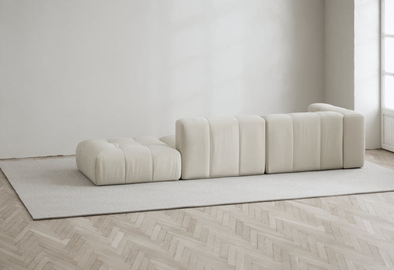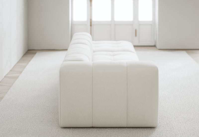 Den modulære sofaserien er en hyllest til det italienske 70-tallet, kombinert med glamouren fra Milans fortid. Samtidig gjenspeiler produksjonen og stoffvalget en moderne kontekst der bærekraft står i fokus. Sofaen er omhyggelig håndlaget i Bulgaria, noe som sikrer eksepsjonelt håndverk.