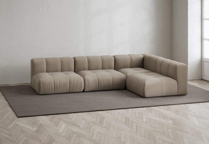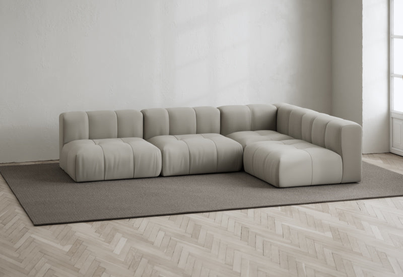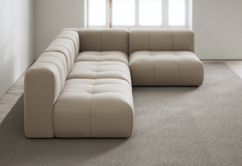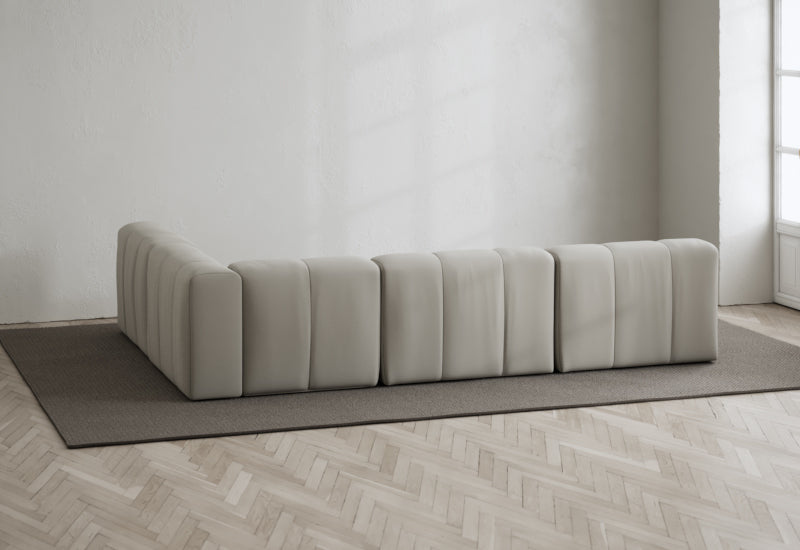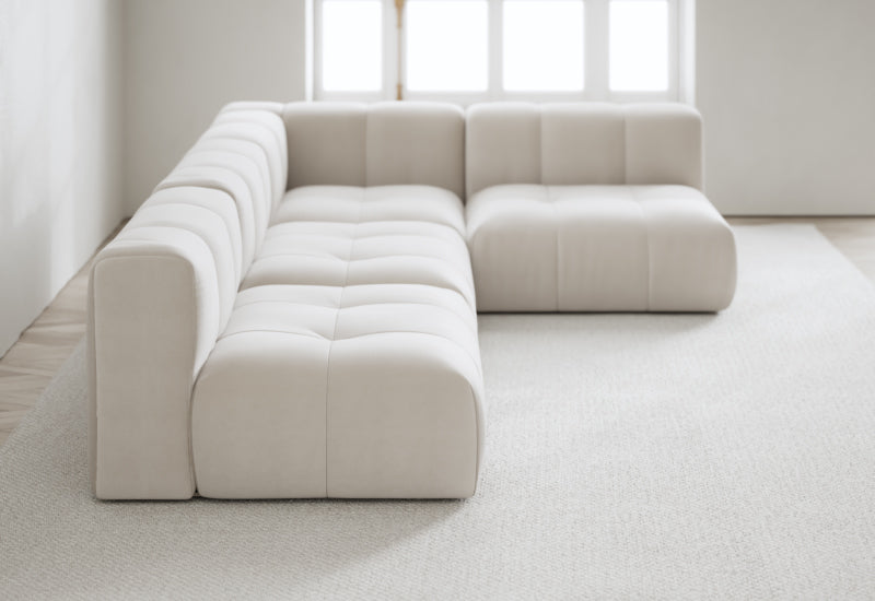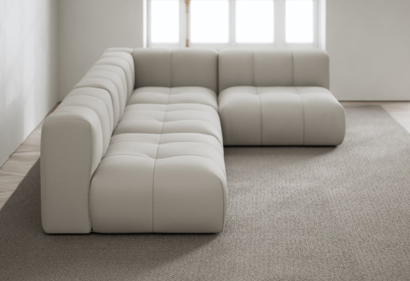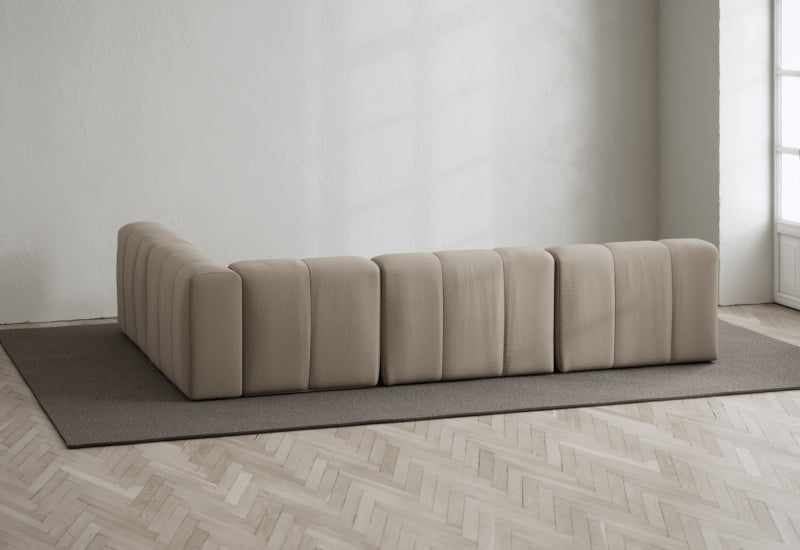 Den modulære sofaserien er en hyllest til det italienske 70-tallet, kombinert med glamouren fra Milans fortid. Samtidig gjenspeiler produksjonen og stoffvalget en moderne kontekst der bærekraft står i fokus. Sofaen er omhyggelig håndlaget i Bulgaria, noe som sikrer eksepsjonelt håndverk.