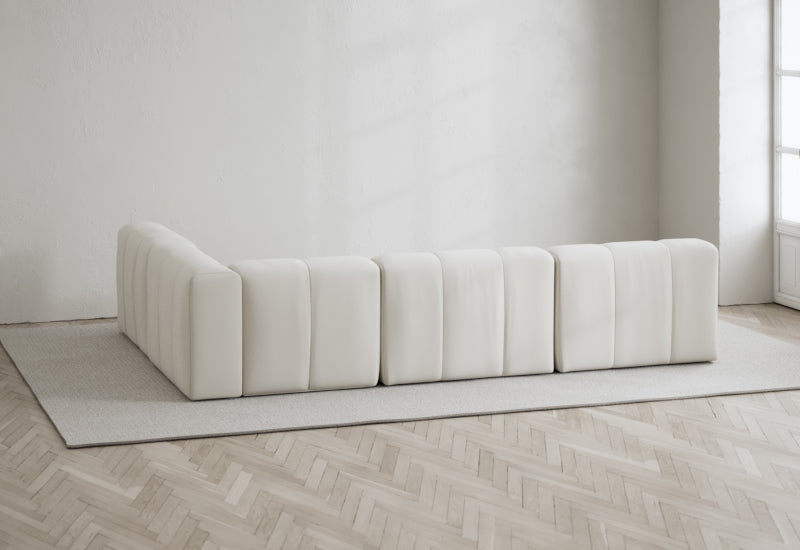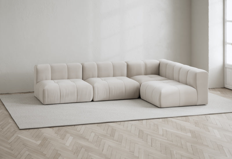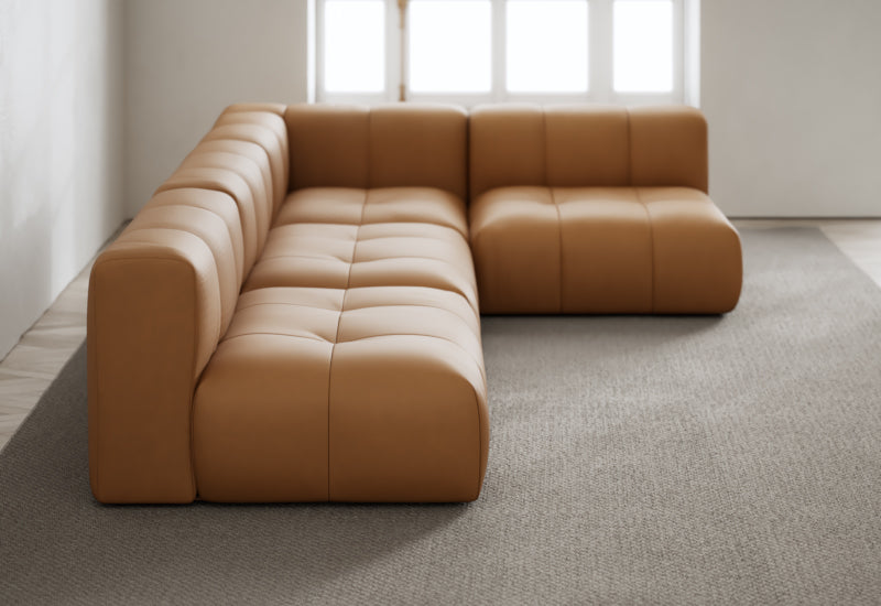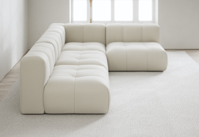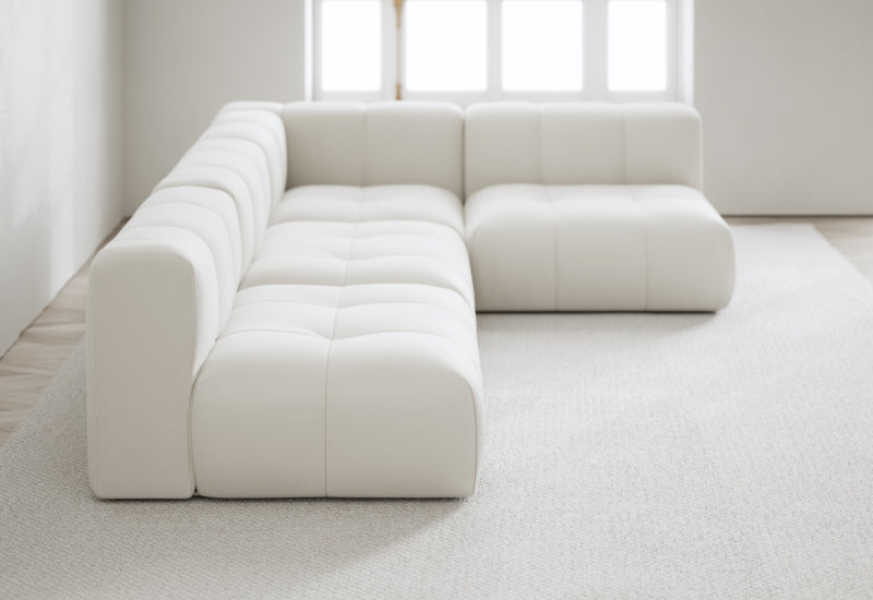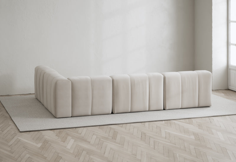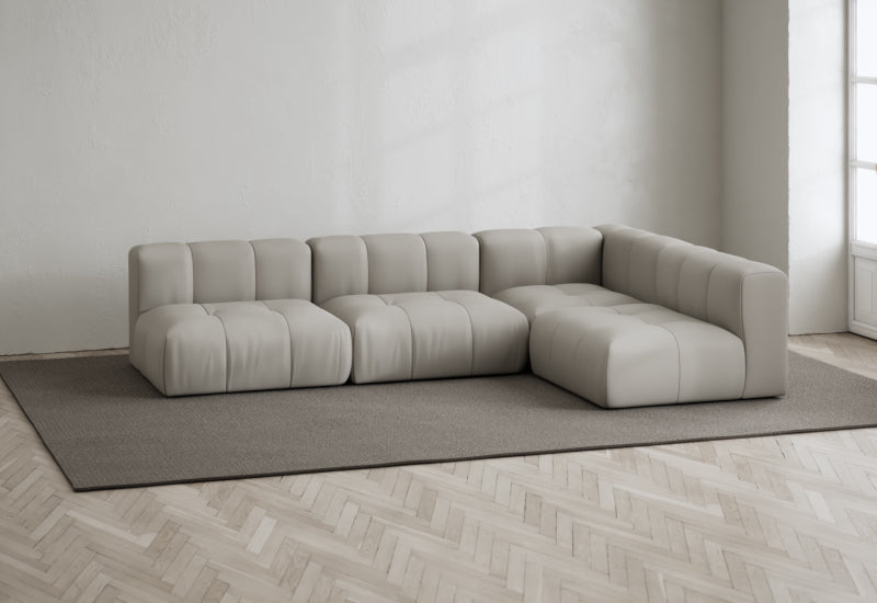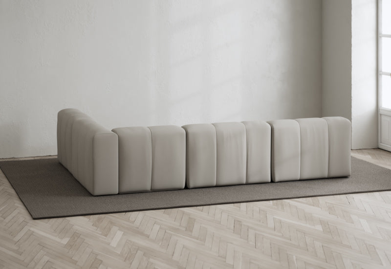 Den modulære sofaserien er en hyllest til det italienske 70-tallet, kombinert med glamouren fra Milans fortid. Samtidig gjenspeiler produksjonen og stoffvalget en moderne kontekst der bærekraft står i fokus. Sofaen er omhyggelig håndlaget i Bulgaria, noe som sikrer eksepsjonelt håndverk.