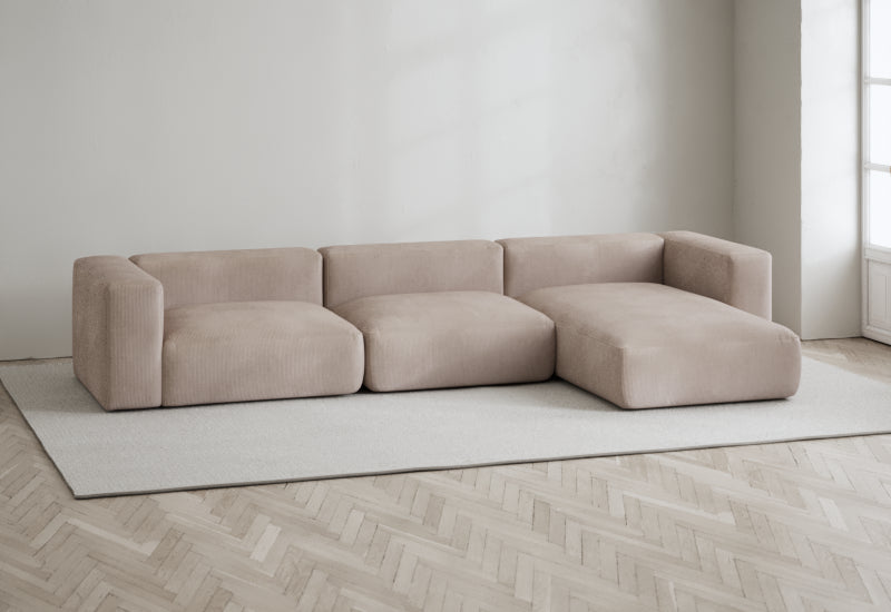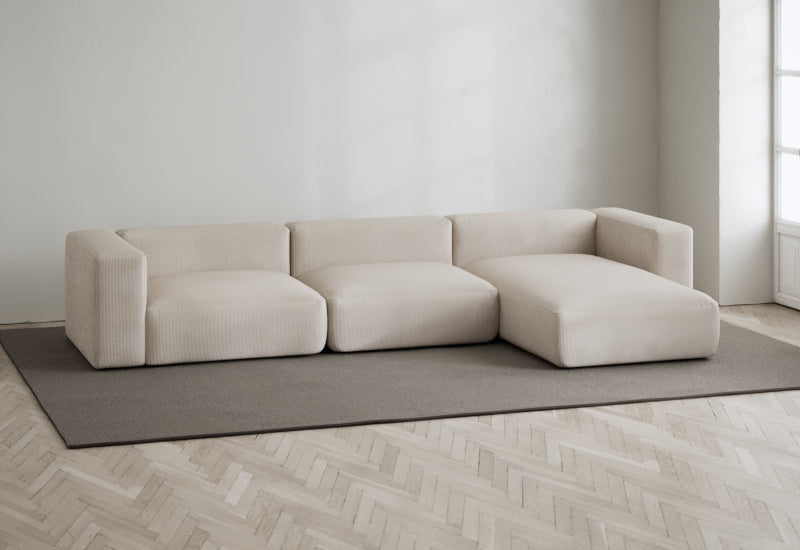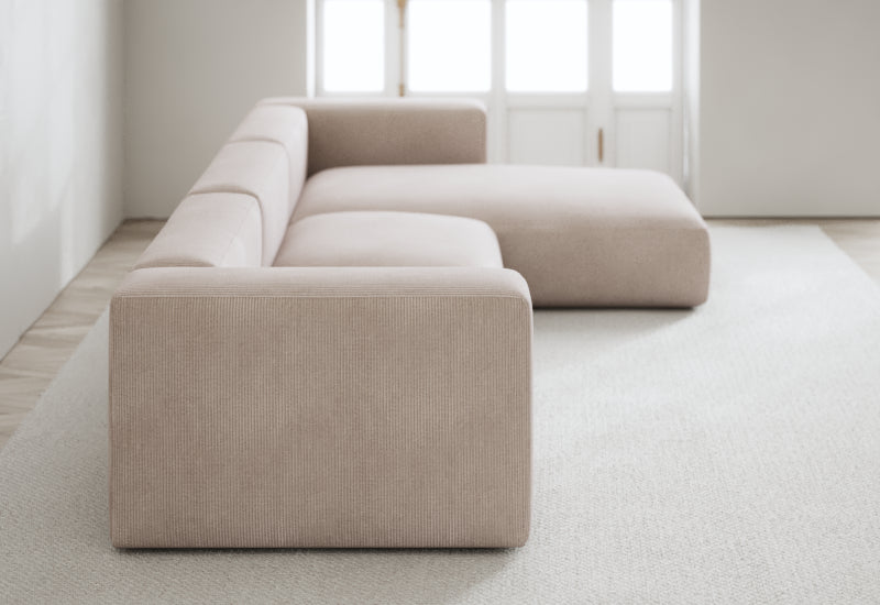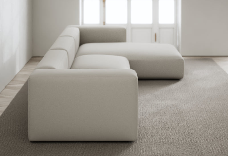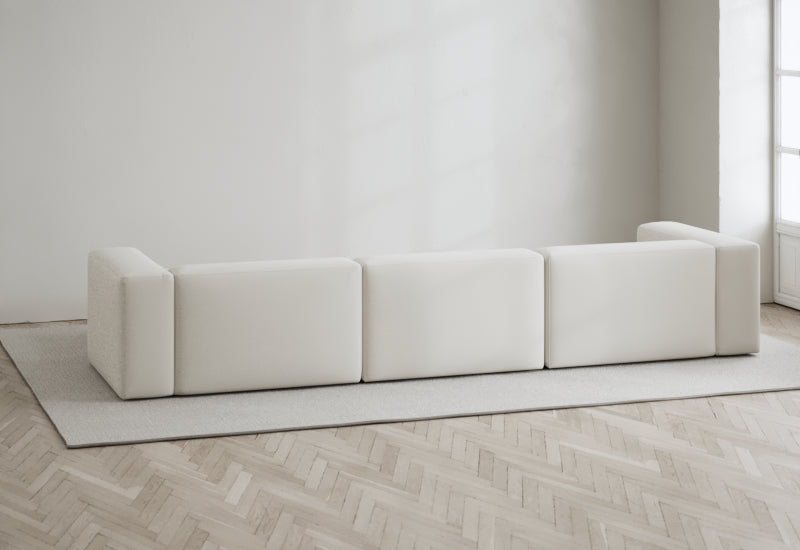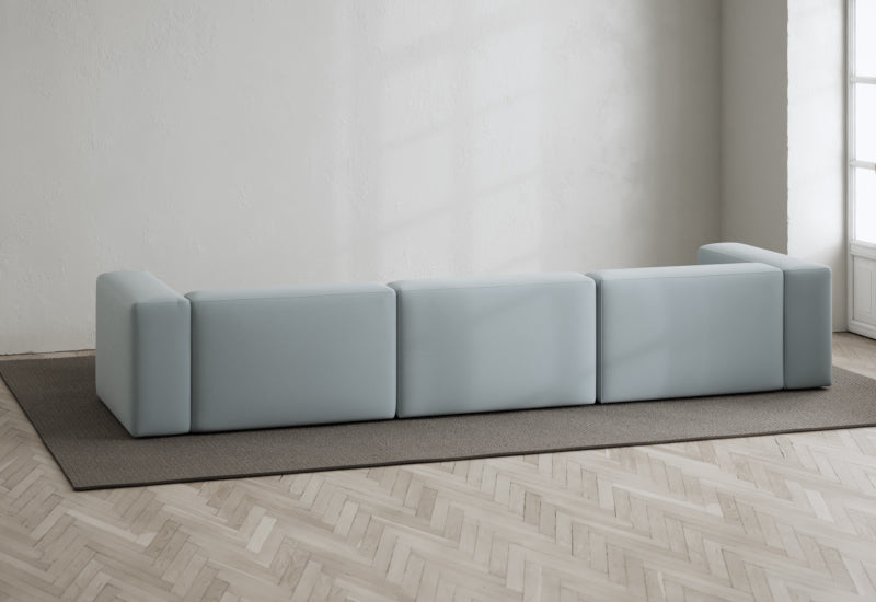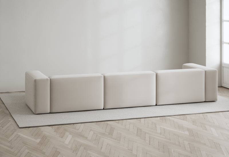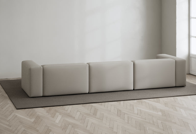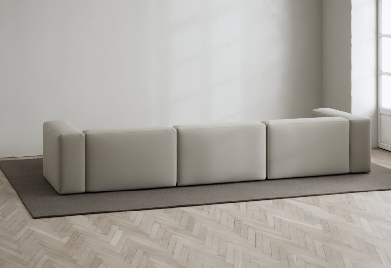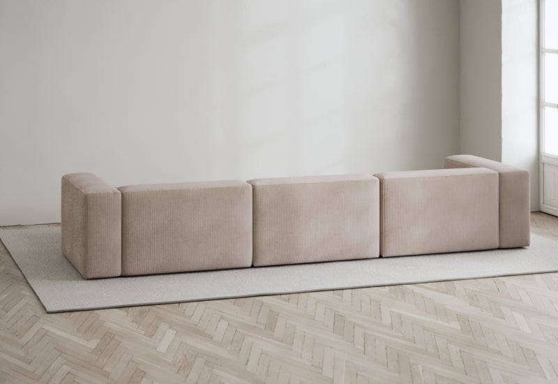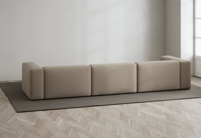 Den modulære sofaserien er en hyllest til det italienske 70-tallet, kombinert med glamouren fra Milans fortid. Samtidig gjenspeiler produksjonen og stoffvalget en moderne kontekst der bærekraft står i fokus. Sofaen er omhyggelig håndlaget i Bulgaria, noe som sikrer eksepsjonelt håndverk.