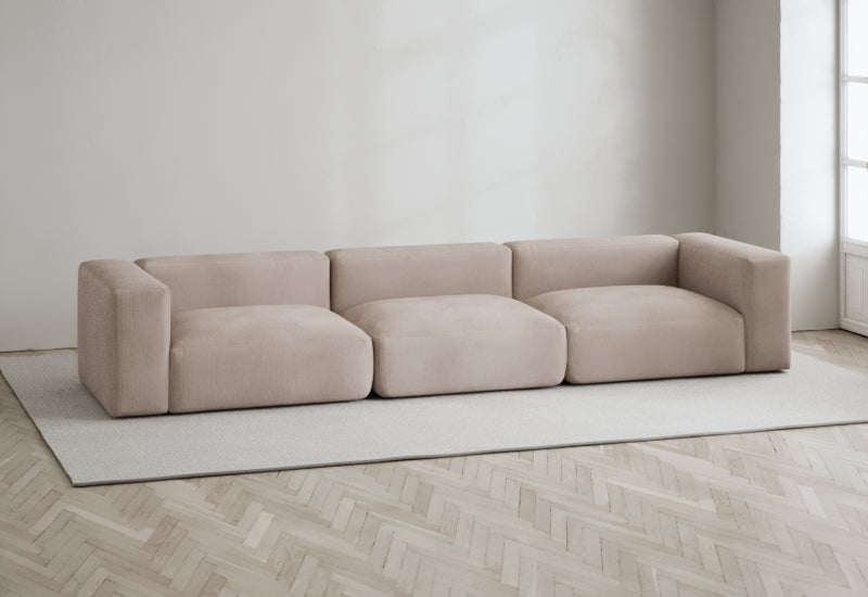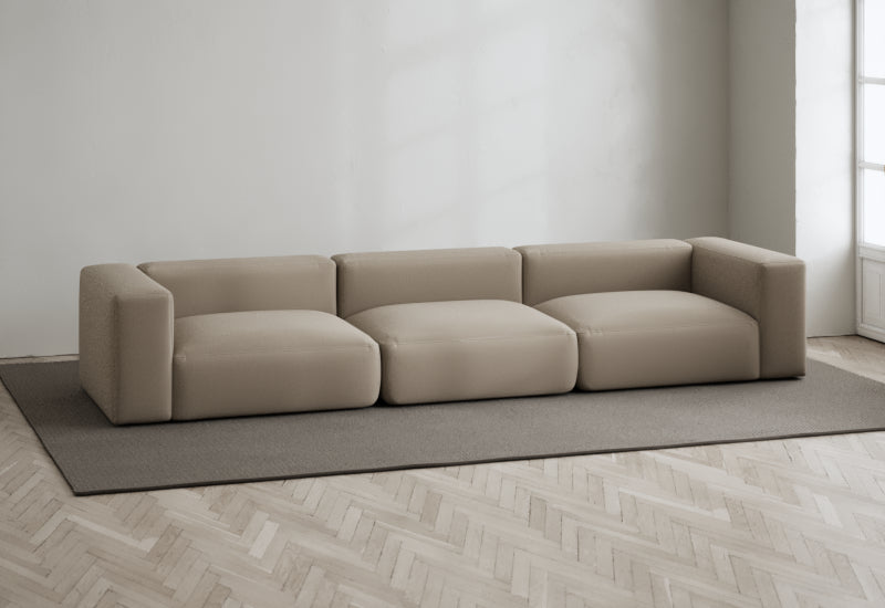 Bredde: 324 cm, Dybde: 162 cm, Høyde: 60 cm, Setebredde: 270 cm, Setedybde: 142 cm, Sittehøyde: 35 cm, Armlener: 27 cm. Stoffet er ikke avtakbart.