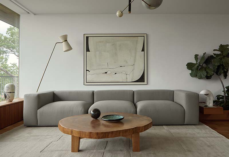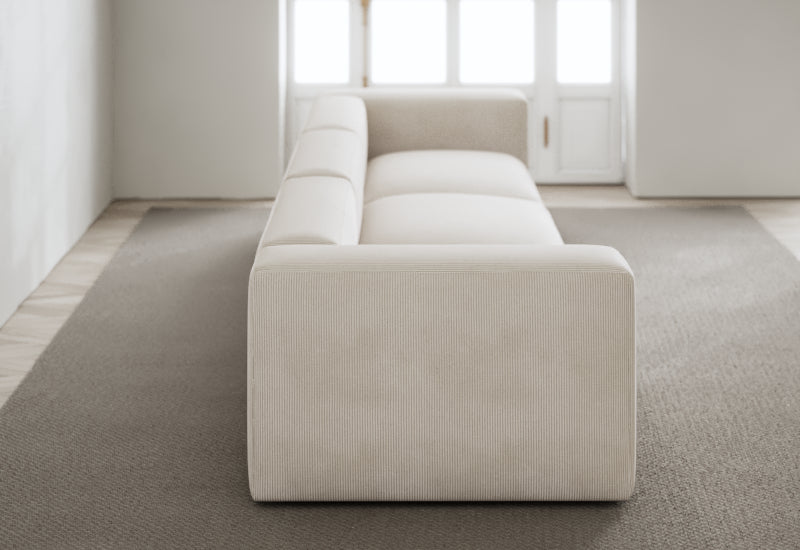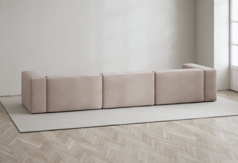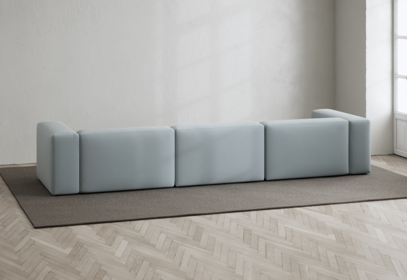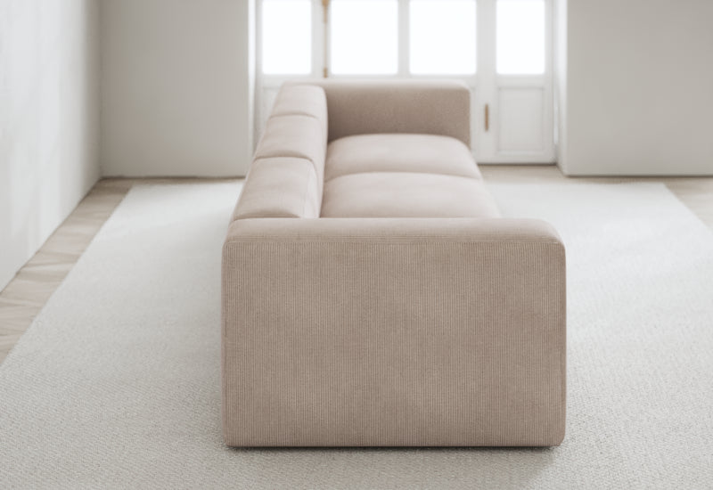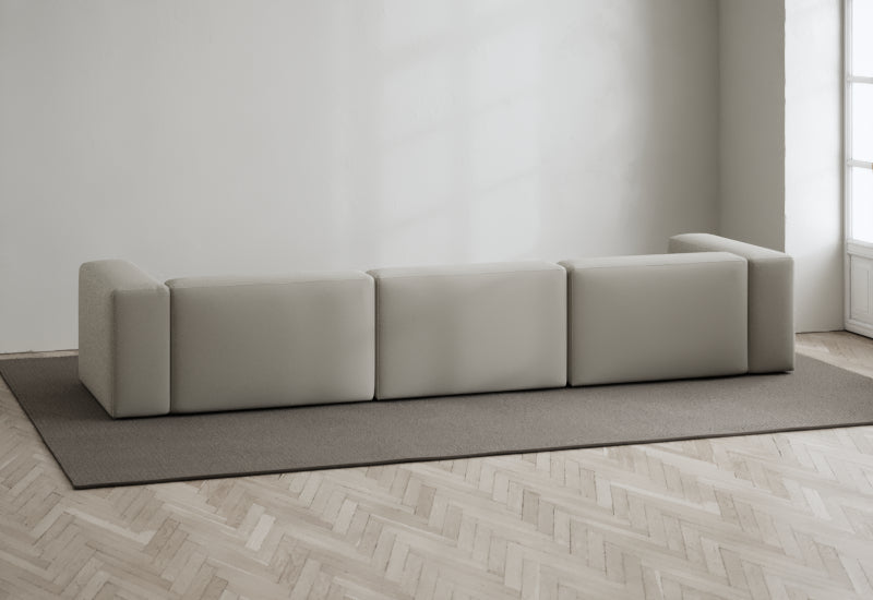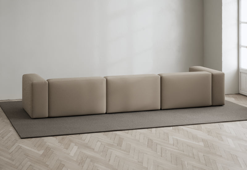 Den modulære sofaserien er en hyllest til det italienske 70-tallet, kombinert med glamouren fra Milans fortid. Samtidig gjenspeiler produksjonen og stoffvalget en moderne kontekst der bærekraft står i fokus. Sofaen er omhyggelig håndlaget i Bulgaria, noe som sikrer eksepsjonelt håndverk.