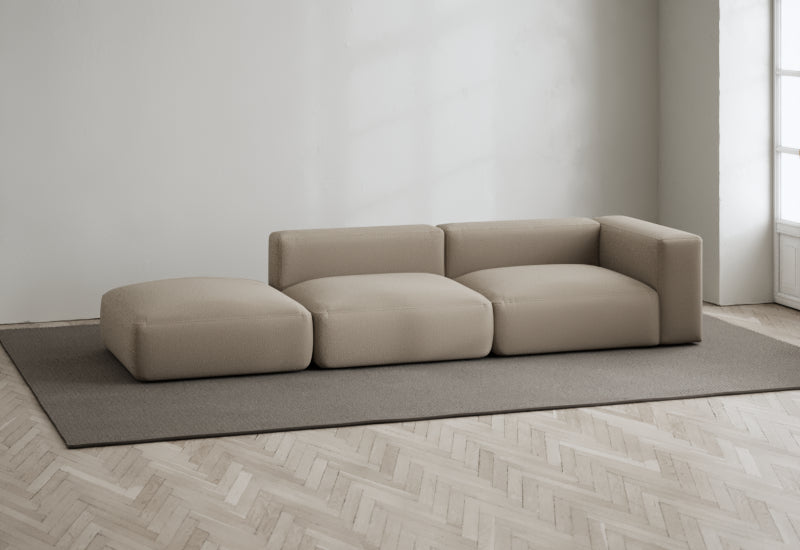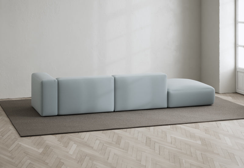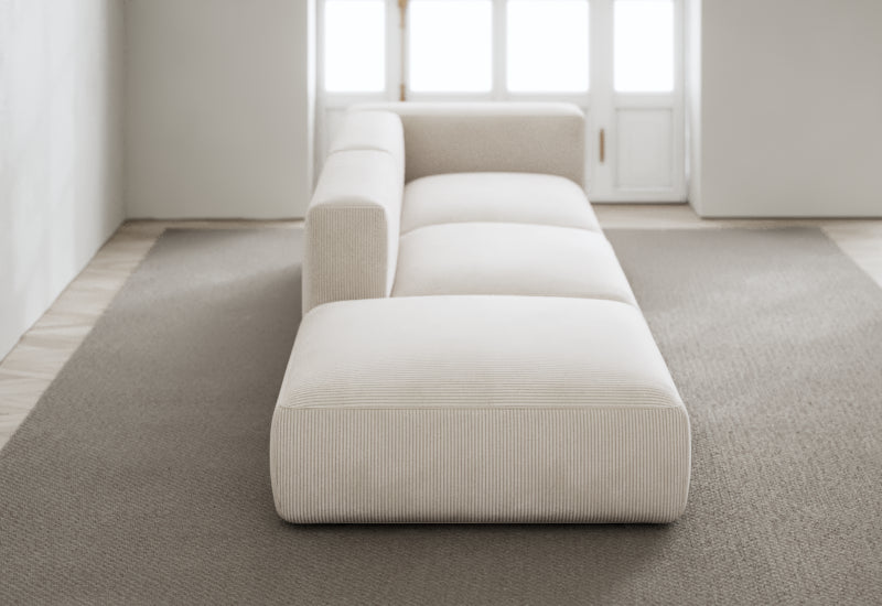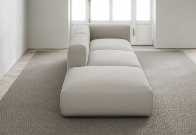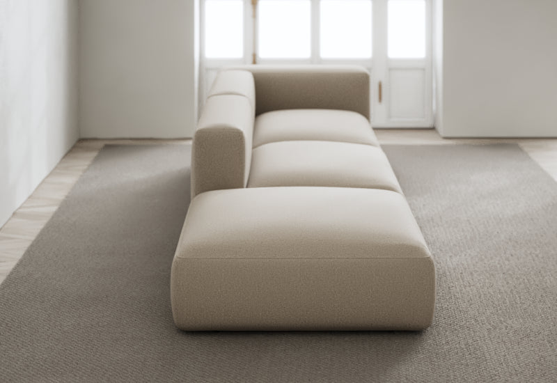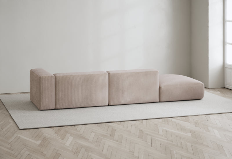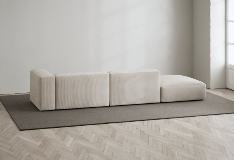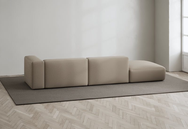 Den modulære sofaserien er en hyllest til det italienske 70-tallet, kombinert med glamouren fra Milans fortid. Samtidig gjenspeiler produksjonen og stoffvalget en moderne kontekst der bærekraft står i fokus. Sofaen er omhyggelig håndlaget i Bulgaria, noe som sikrer eksepsjonelt håndverk.