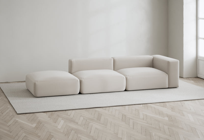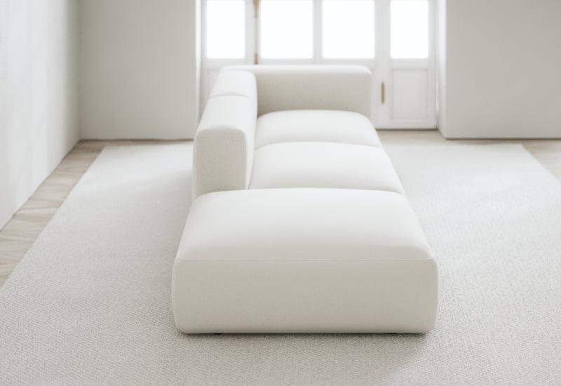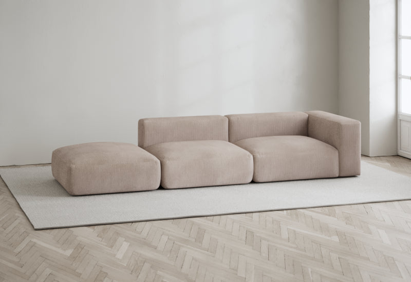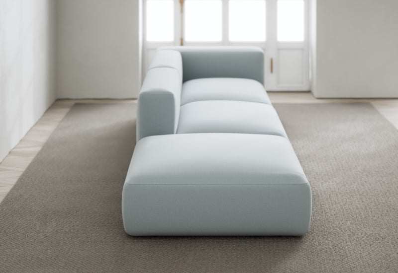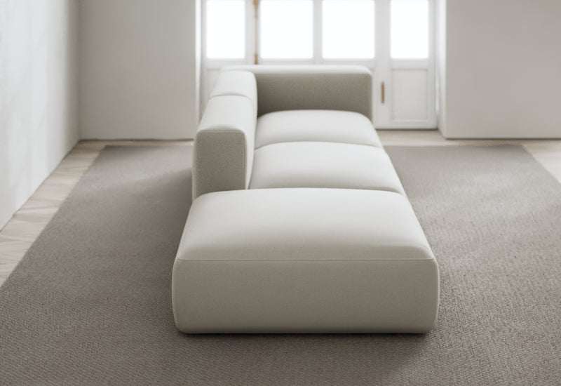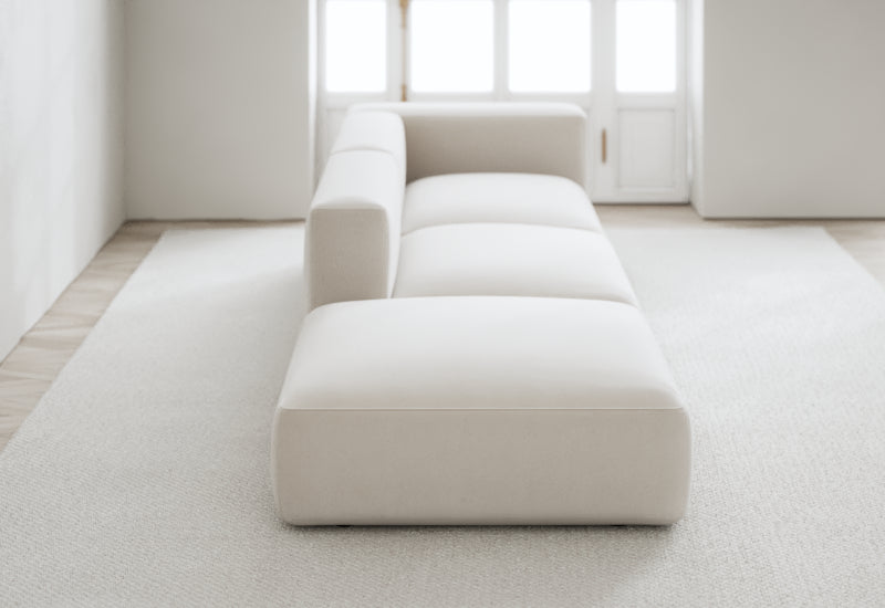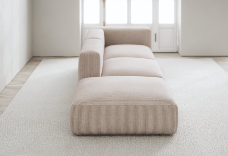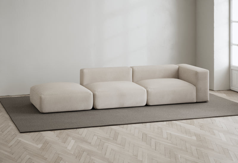 Den modulære sofaserien er en hyllest til det italienske 70-tallet, kombinert med glamouren fra Milans fortid. Samtidig gjenspeiler produksjonen og stoffvalget en moderne kontekst der bærekraft står i fokus. Sofaen er omhyggelig håndlaget i Bulgaria, noe som sikrer eksepsjonelt håndverk.