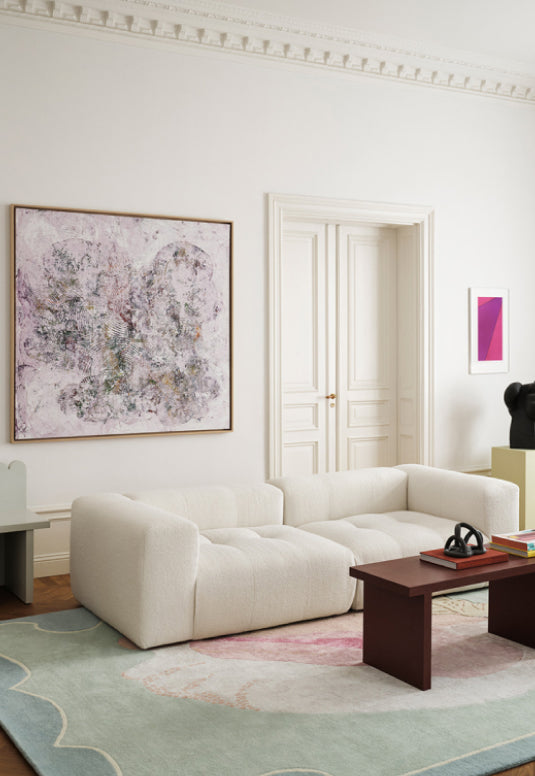Att titta på Constance Tenvik och hur hon porträtterar de människor hon möter - eller i dessa dagar - inte möter - så får man omedelbart en connection, precis som om man själv varit där. Med denna kollektion är funktionen i centrum, mattan kommer genom sin design att skapa en värme och mjukhet till rummet den placeras i. Men den har också en annan dimension - att bjuda in konst och själva uppskattningen av konst - till ditt hem.