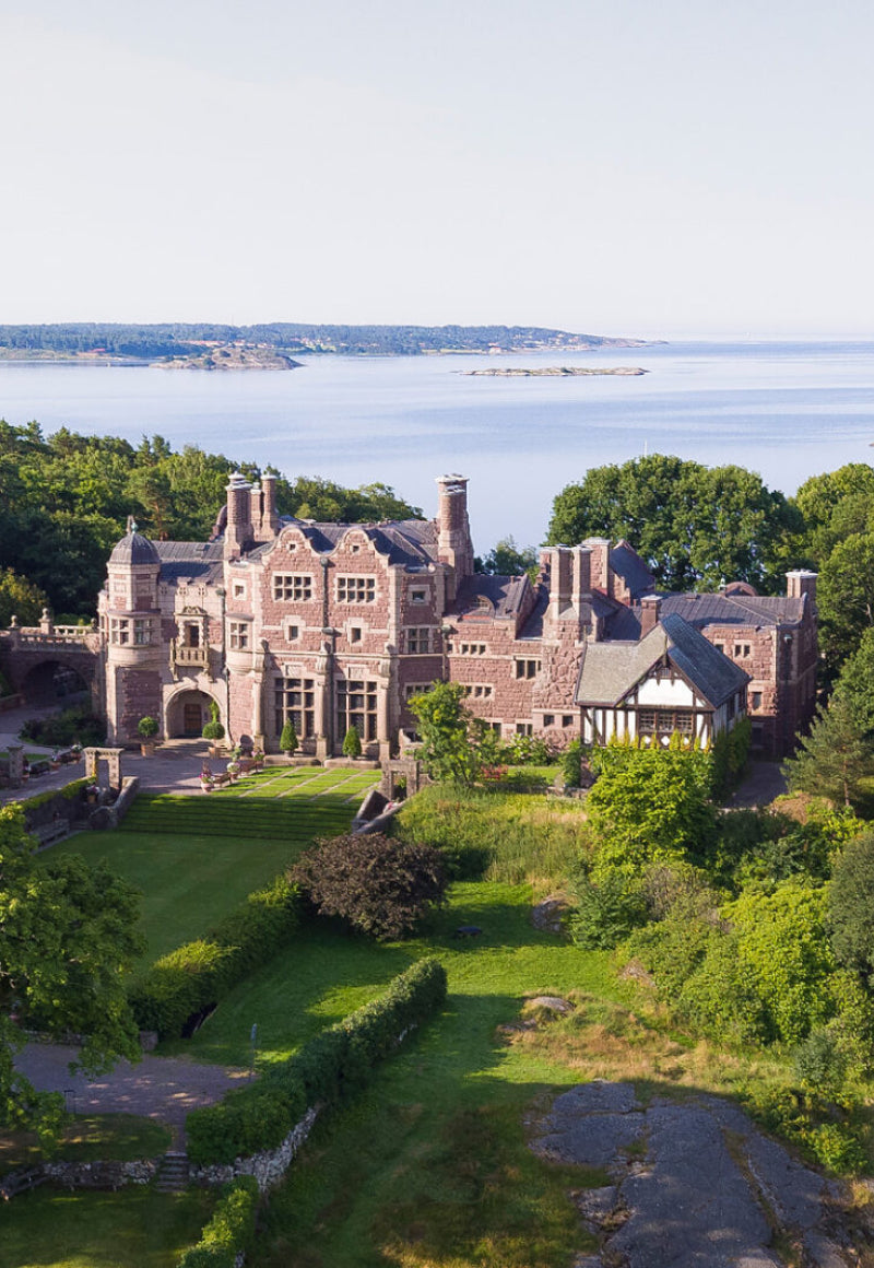 “Detta nationalromantiska mästerverk byggdes år 1904, av bergsmannen och ingenjören Lars Yngström tillsammans med sin fru Zi. De tog hjälp av arkitekten Lars Israel Wahlman, som också är känd för att ha ritat Tjolöholms slott i Fjärås. Wahlman, designade inte bara själva huset utan även möbler, porslin och trädgård, vilket gör att huset har en väldigt genomarbetad och sammanhållen design.”