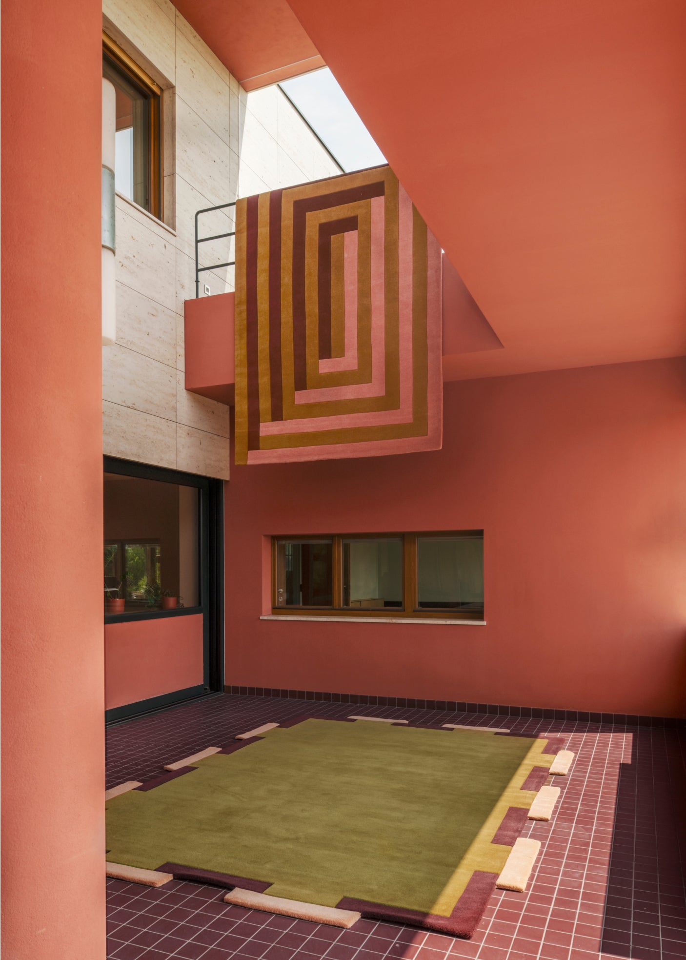 Invändigt avslöjar huset en mjukare sida: travertingolv, marmorbadrum och varma trädetaljer. Under dagens lopp rör sig ljus och skuggspel genom rummen och förstärker den känsla av djup och rörelse som präglar Teklans kollektion.