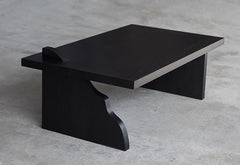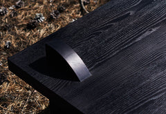 Ett rustikt, svart soffbord formgivet av Axel Wannberg för LAYERED. Tillverkat i Sverige med handarbete, känsla och modern teknik.